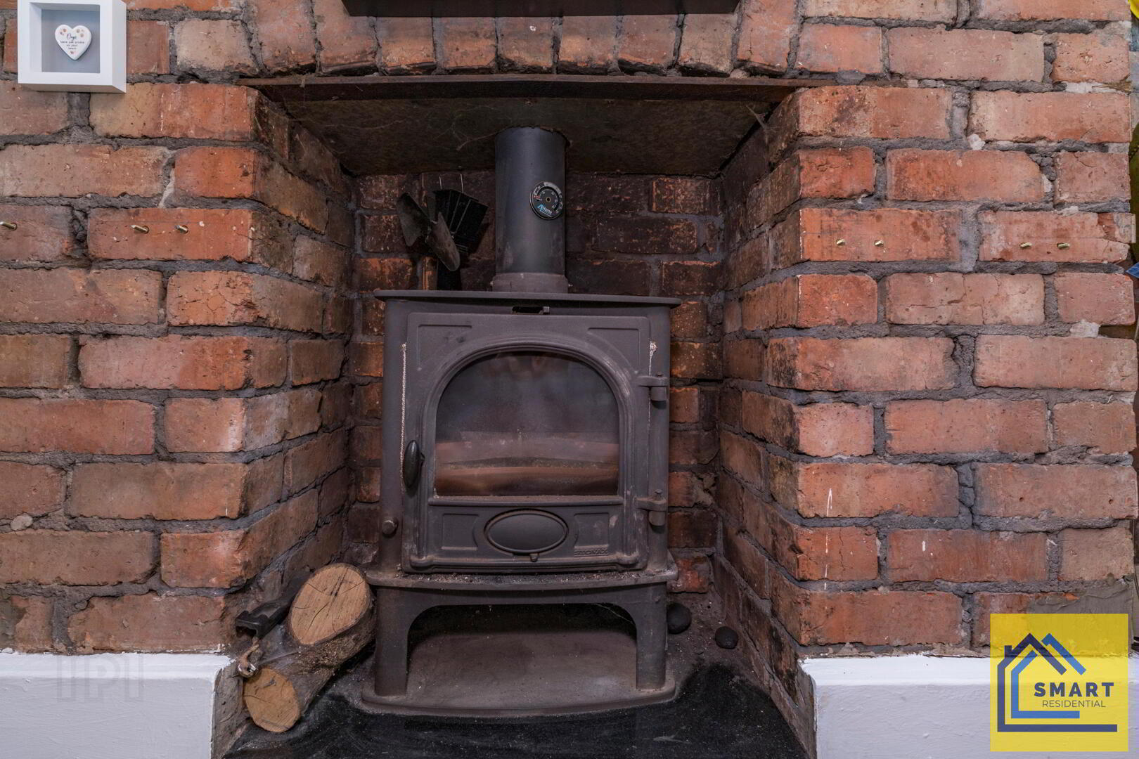 • Lounge with bay window, feature fireplace with wood burning stove & exposed brick wall