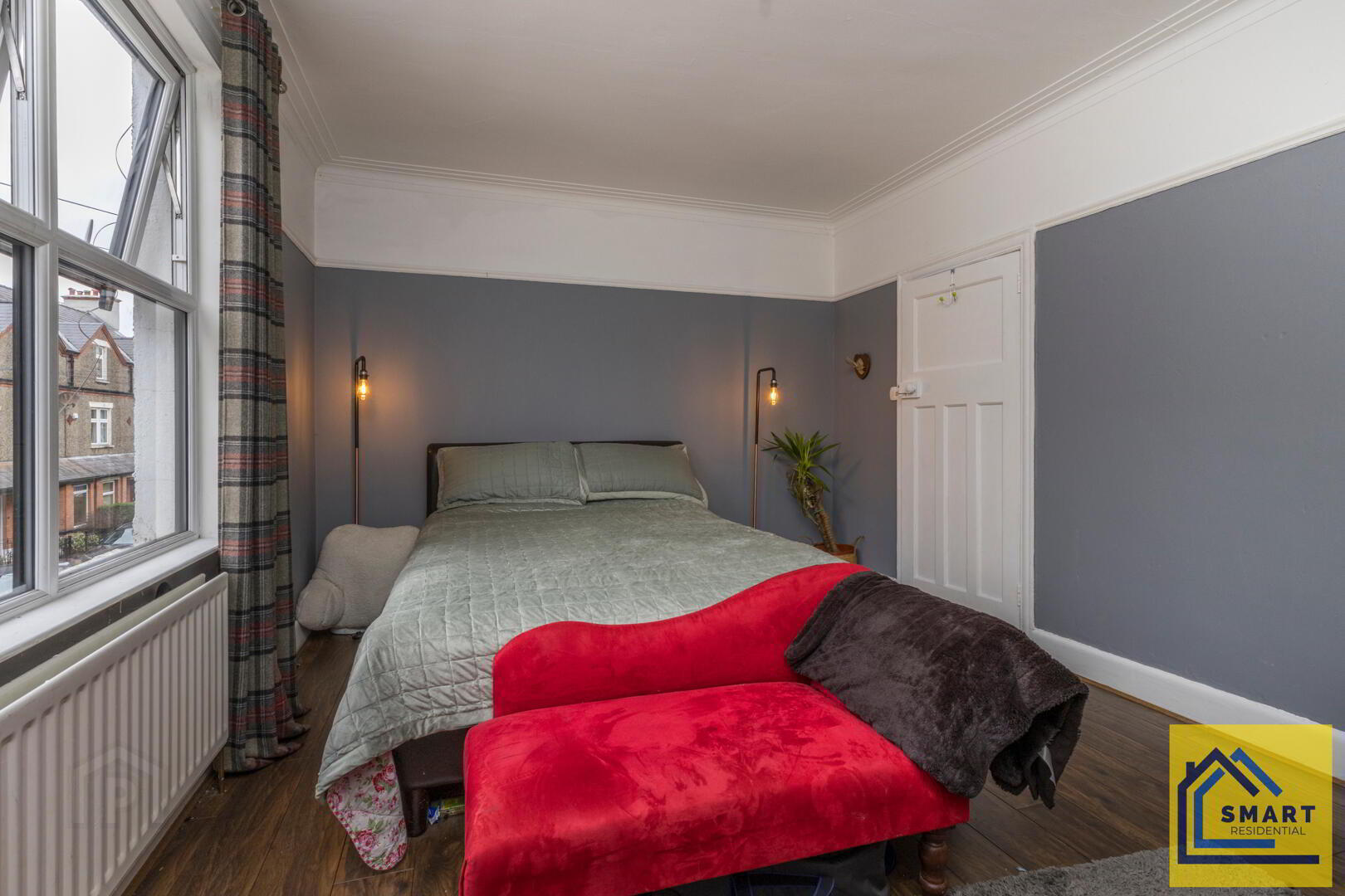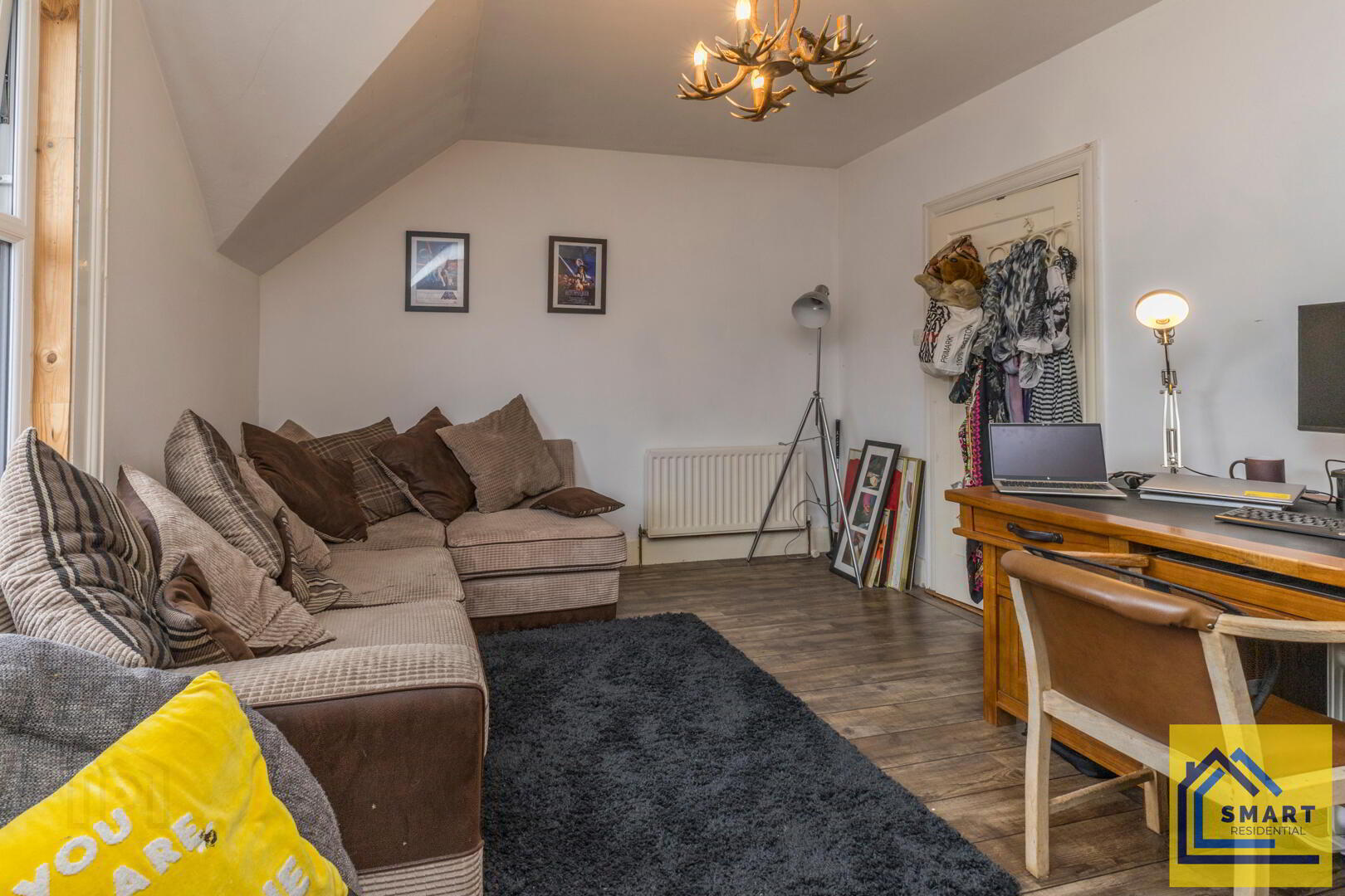 Bedroom 3 is a cosy room on the first floor and features wood-effect flooring and neutral decor, making it versatile for use as a bedroom or study space.