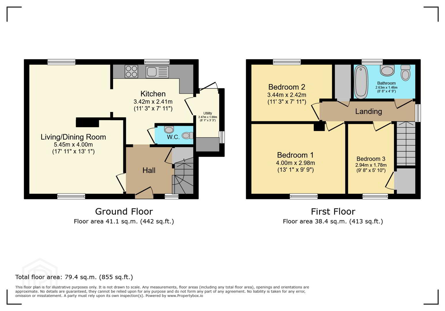 Bathroom 2.63m x 1.46m