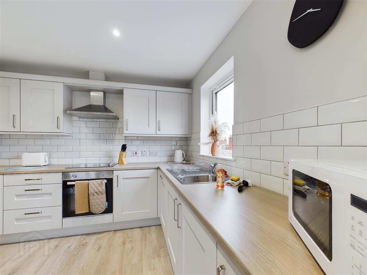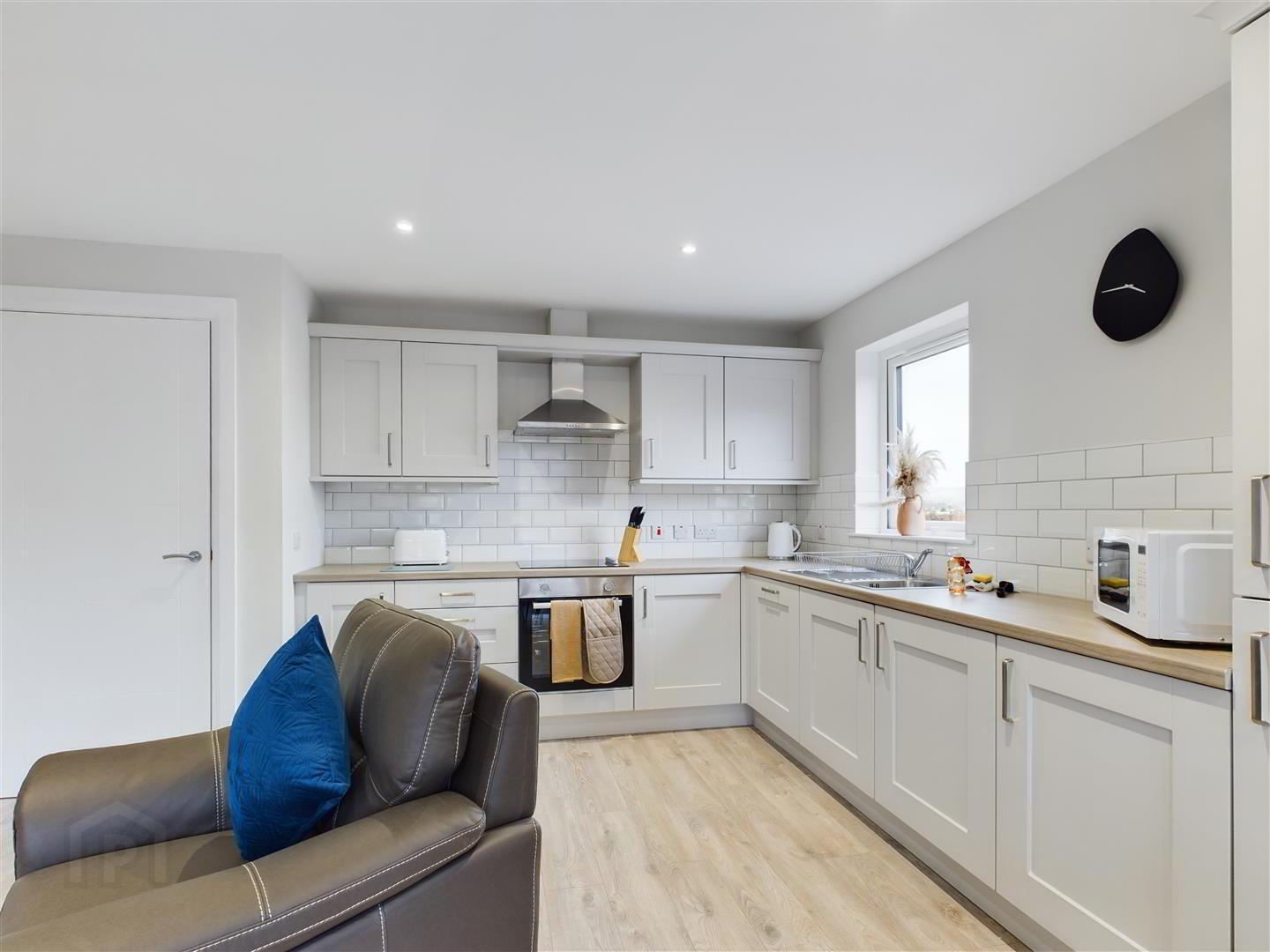 The apartment offers generous living accommodation throughout, featuring a bright and spacious lounge that flows seamlessly into a dedicated dining area—perfect for both relaxation and home working. This open-plan space is complemented by an excellent fully fitted kitchen equipped with a range of contemporary units. The property further benefits from two well-proportioned, double bedrooms and a sleek shower room with a modern three-piece white suite. Additional features include uPVC double-glazed windows and an efficient electric heating system, ensuring a comfortable and low-maintenance living environment.